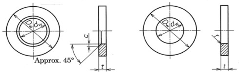 Note: The figures above indicate the washer chamfered (about 45 degree) and that rounded(r), and either of them may be used.